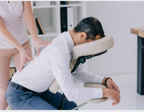 Chair massage in the comfort of your office is a wonderful way to give back to your employees. A 10 to 15 minute massage focusing on the back and neck can do wonders for a person who mostly sitting at a desk during the work da